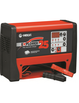 Nová generácia nabíjania prostredníctvom invertorovéj mikroprocesorovéj nabíjačky EXPLORER 25. Využívajúcej najprogresívnejšie metódy procesu nabíjania. Sú to vlastne strednofrekvenčné alebo vysokofrekvenčné prístroje riadené mikroprocesorom. Výhodou týchto nabíjačov je naviac malá hmotnosť, male rozmery a vysoká energetická účinnosť. V nabíjačkách Explorer je proces nabíjania riadený mikroprocesorom v troch úrovniach. Konštantný prúd, konštantné napätie a pulzné záverečné dobíjanie. Ukončenie nabíjania je automatické. Prúd je riadený tak, aby neprišlo k prehrievaniu akumulátora počas nabíjania. Napätie je riadené tak, aby sa zamedzilo tvoreniu horľavých a zdraviu škodlivých plynov. Toto umožňuje nabíjať všetky druhy olovených akumulátorov, bezúdržbových, hermetických Gel a AGM. Nabíjačky sú elektronické bez napäťových špičiek na výstupe, takže nepoškodia elektroniku zariadení, ktorými je vybavené vozidlo. Akumulátor sa môže nabíjať bez odpojenia elektroinštalácie vozidla od akumulátora a nabíjať priamo v aute, tým pádom sa nevynulujú uložené údaje v aute ako sú napr: hodiny, autorádio, palubný počítač ... Sú plne automatické. Vhodné na nabíjanie a aj udržovacie dobíjanie pre udržanie akumulátora v pohotovosti. Sú chránené proti preťaženiu a skratu. Tým že sú plne automatické sú veľmi oblúbené u menej zručných ľudí.